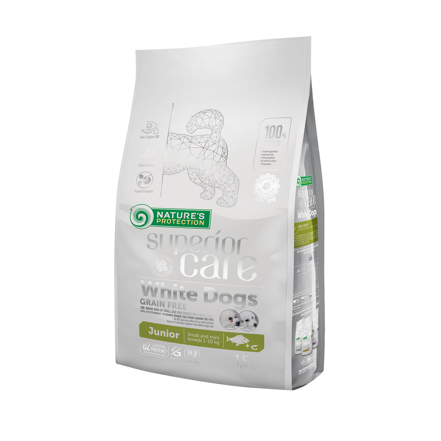 Hạt khô Nature’s Protection dành cho chó con lông trắng size nhỏ vị cá trắng và tôm gói 1,5kg