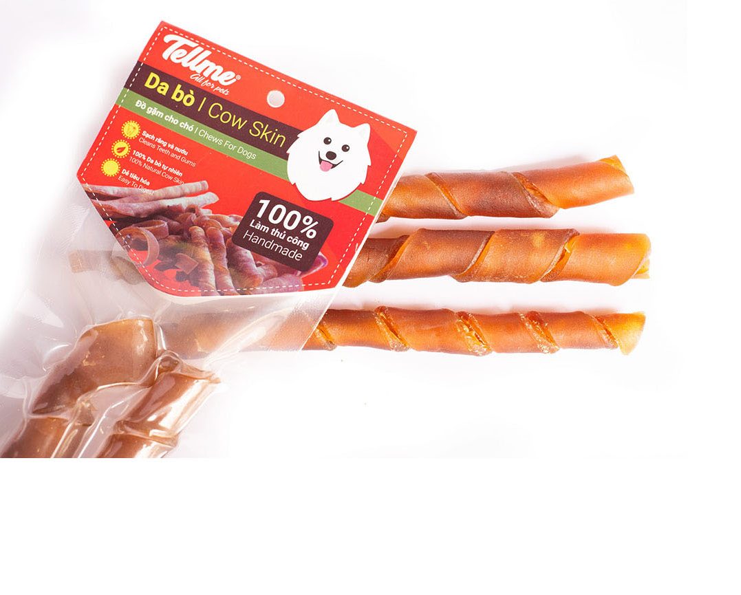 Thức ăn Tellme dành cho chó dạng xoắn size M da bò gói 90g