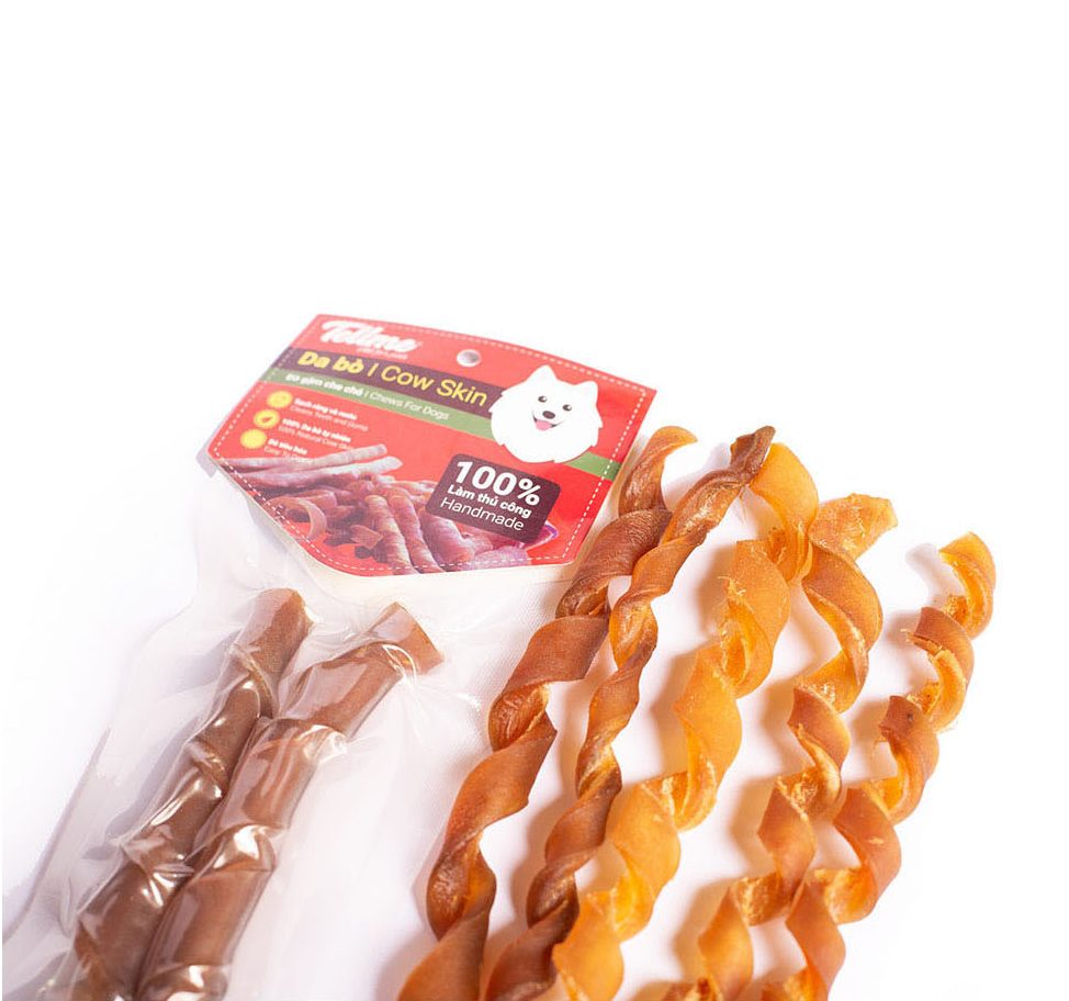 Thức ăn Tellme dành cho chó dạng xoắn size XS da bò gói 30g